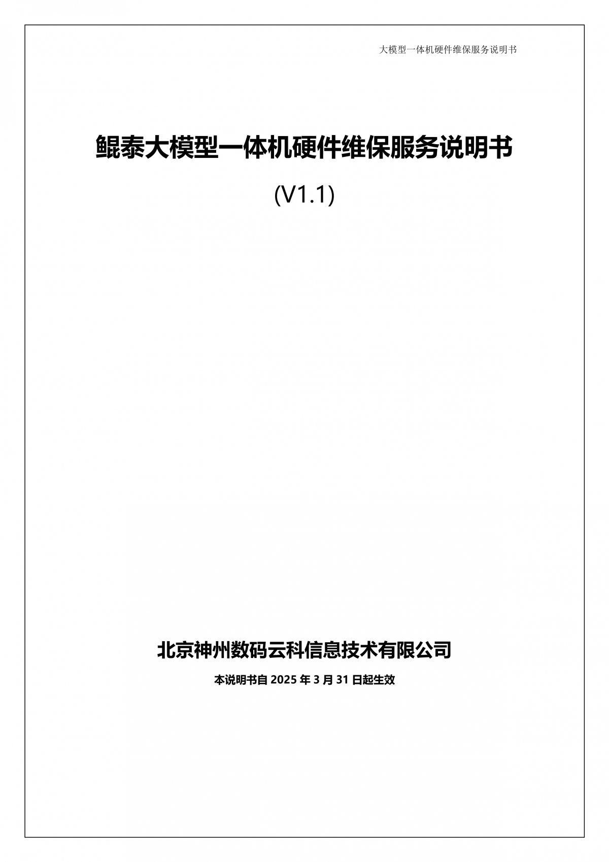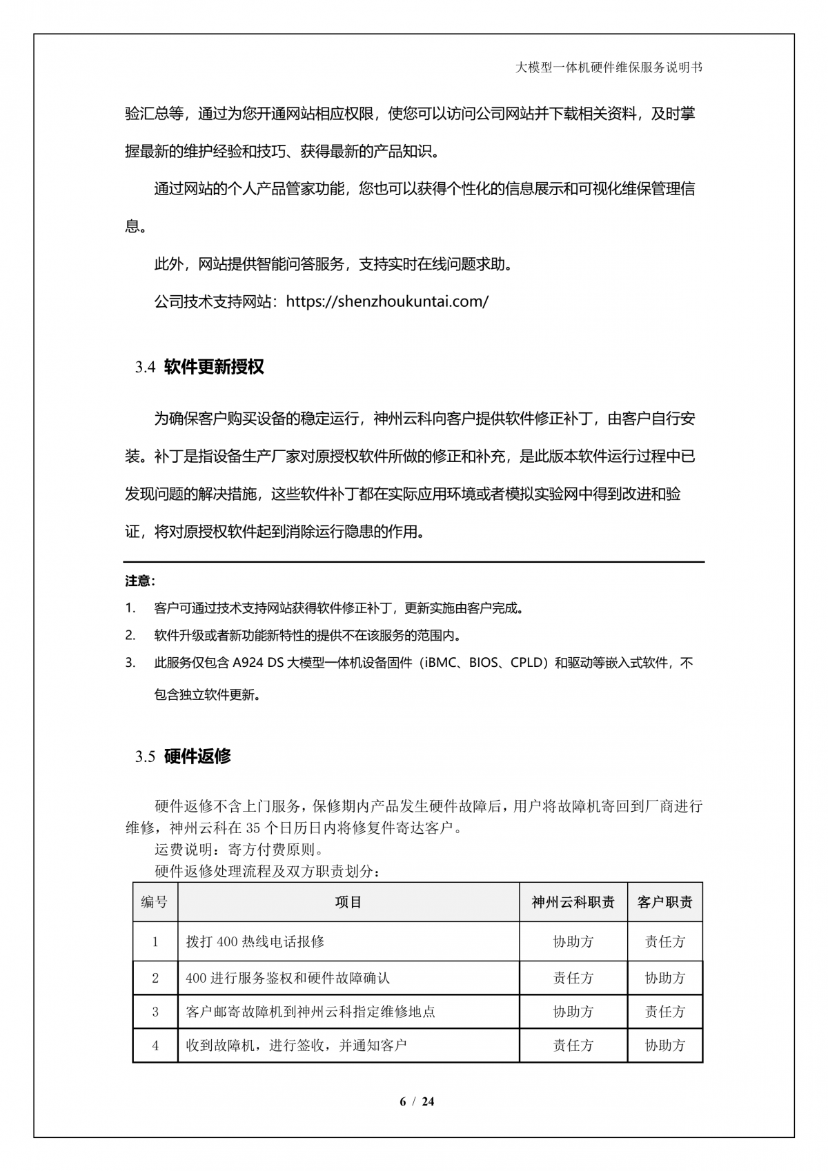 bbin宝盈集团官网A924 DS大模型一体机硬件维保服务说明书_V1.1